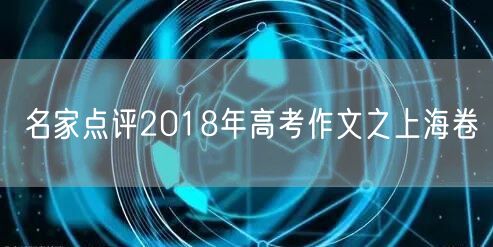2018年上海高考作文题非常有匠心,体现了命题者的思考。这个命题切入了社会、文化、心理深层,如果能少加梳理思路,会很有发挥空间。