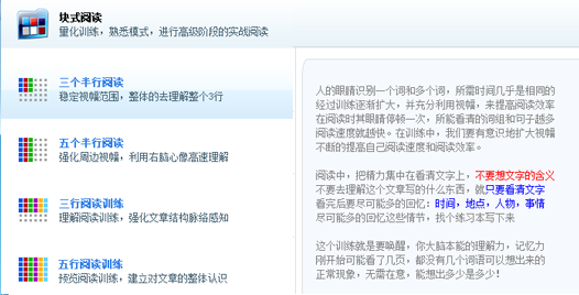逍遥右脑快速阅读训练方法有垂直阅读法、语群卡片闪示法、短文句段框读法。